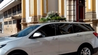 - Cinta membretada, coche fúnebre, misa de exequias.